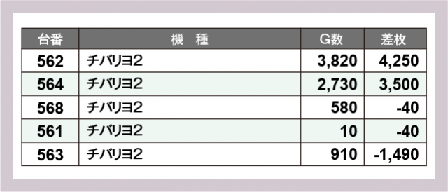 ※差枚数順に掲載しています
