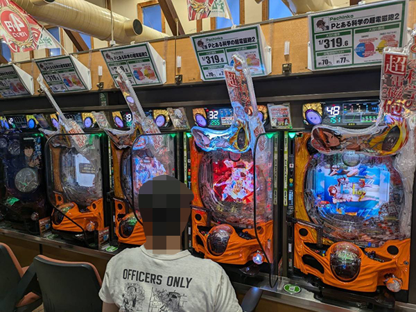 14時ごろの4円パチンコでは「Pとある科学の超電磁砲2」や「e北斗の拳10」が人気で、プレイヤーの嬉しそうな表情を確認している。