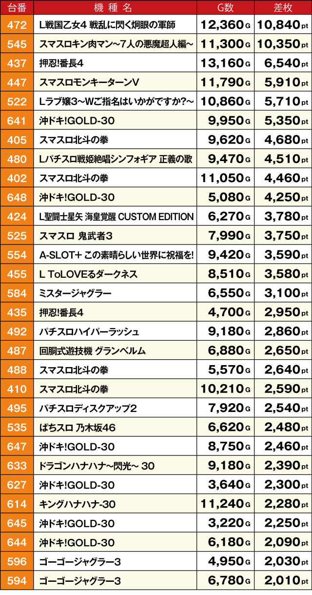 ※差枚pt数順に掲載しています。