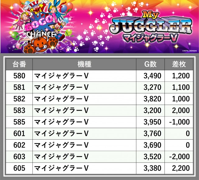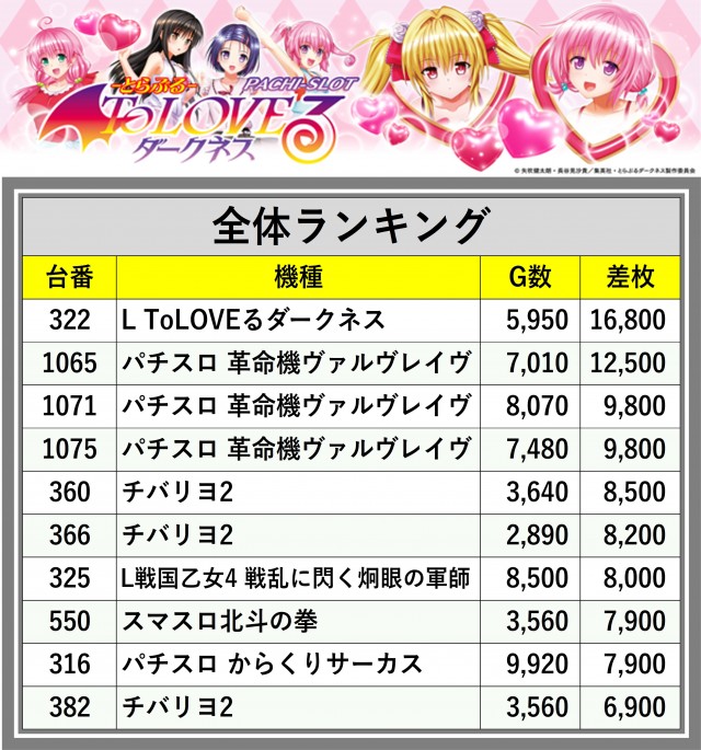 厳選された取材対象機種をはじめ、その他スロット全体から好記録が飛び出した!プレイヤーが楽しんだ1日を下記データにて振り返ってみて欲しい。