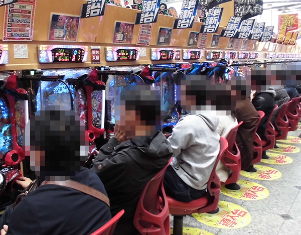 パチンココーナーには、全台に各台計数機と分煙ボードが完備されている。