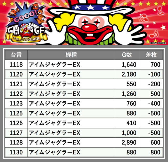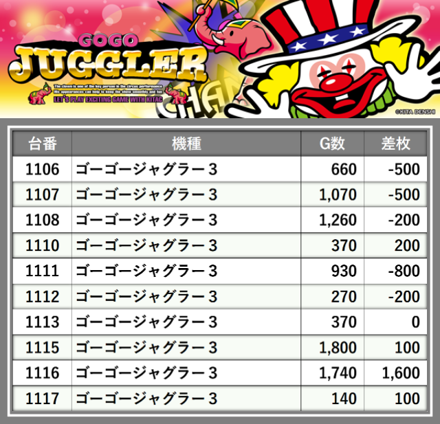 ※台番順に掲載しています