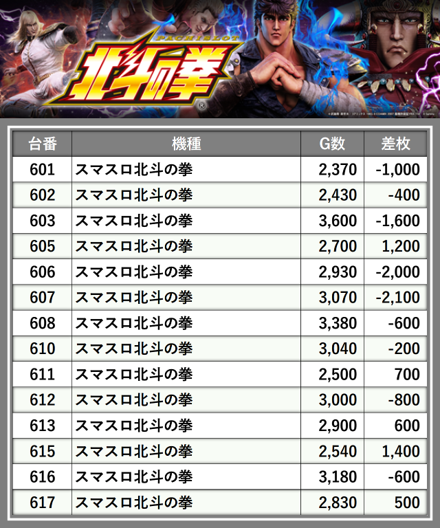 ※台番順に掲載しています