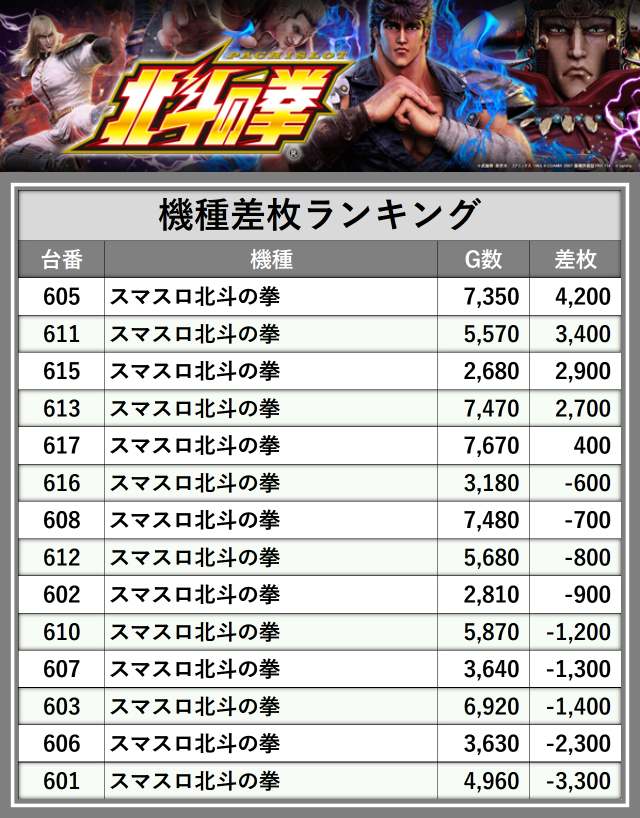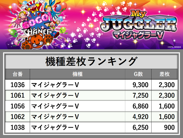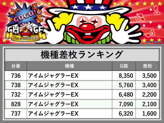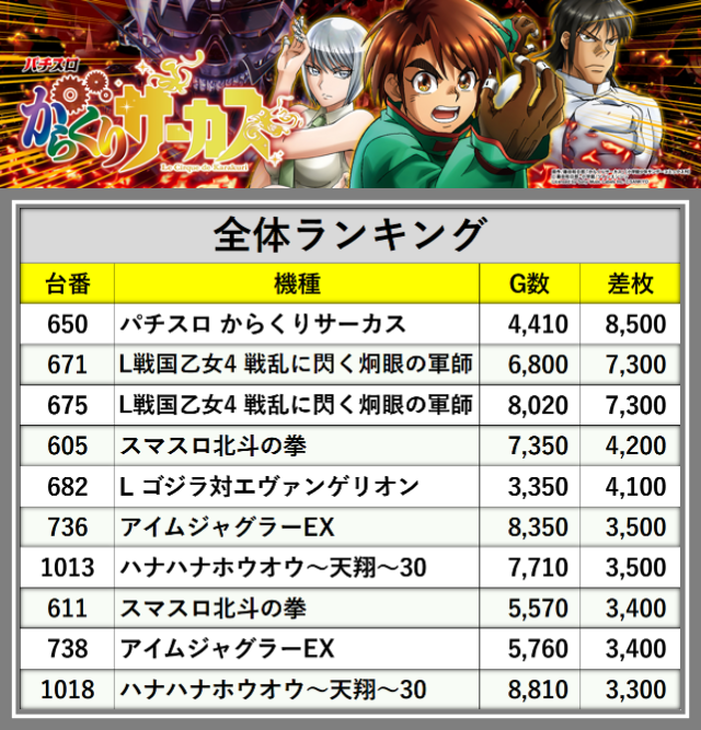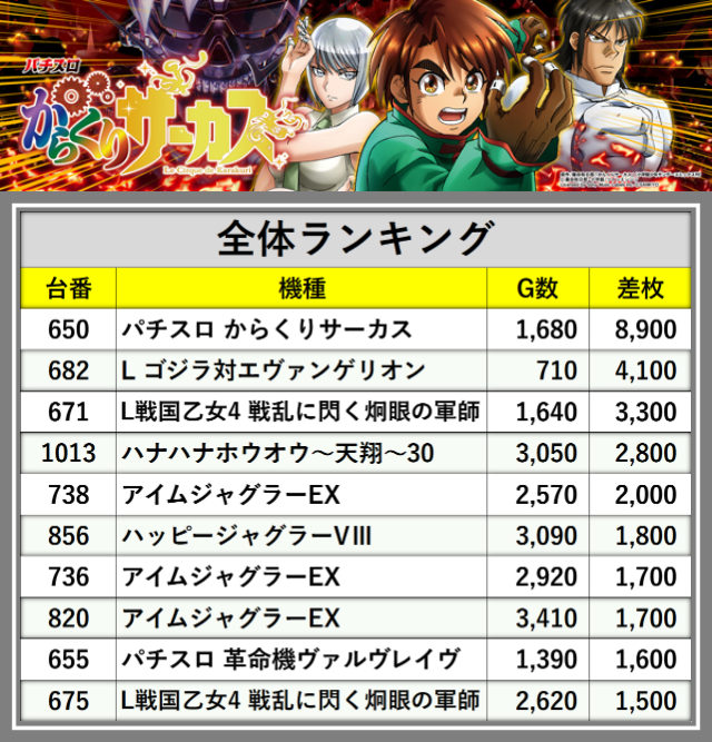 ※差枚数順に掲載しています