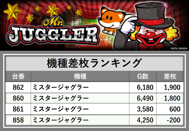 厳選された取材対象機種をはじめ、その他スロット全体から好記録が飛び出した!プレイヤーが楽しんだ1日を下記データにて振り返ってみて欲しい。
