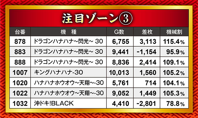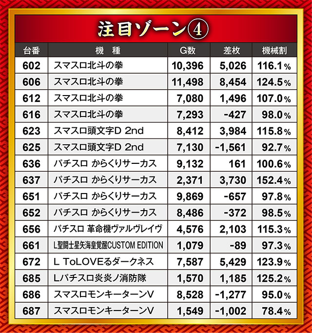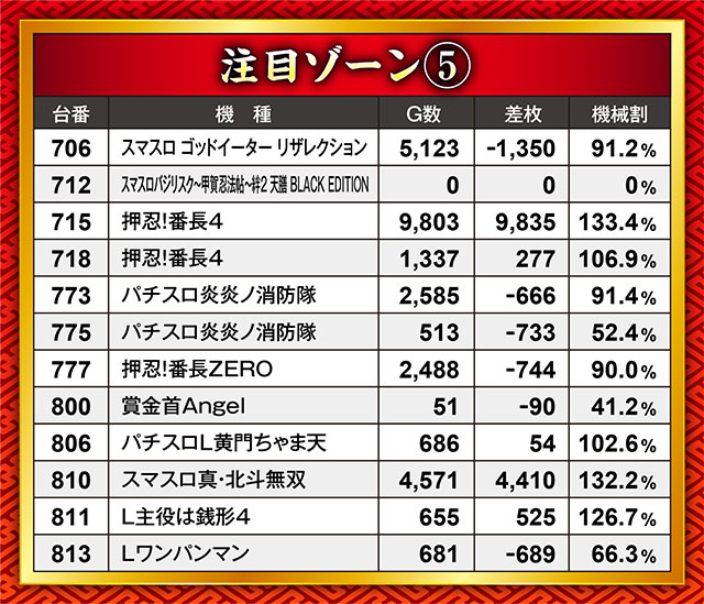『押忍!番長4』から10,000枚に迫る特大レコードが生まれたこちらのブロック。しかし共通して言えるのは、総ゲーム数不足で中途半端な結果となってしまった台があったことだろう。