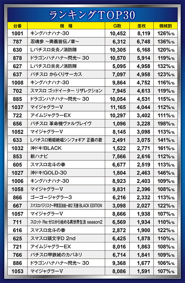 パチスロTOP30を発表!