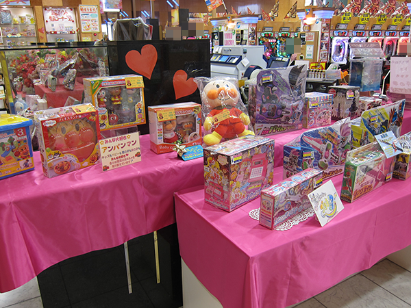 取材日はバレンタインデーということもあり、賞品コーナーやカウンター周りをはじめ、ホール内はより鮮やかな装飾で彩られていた。