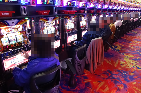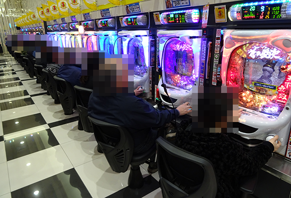 この日も、たくさんのプレイヤーが来店しており、パチンコとパチスロの各シマが活気に包まれていた。