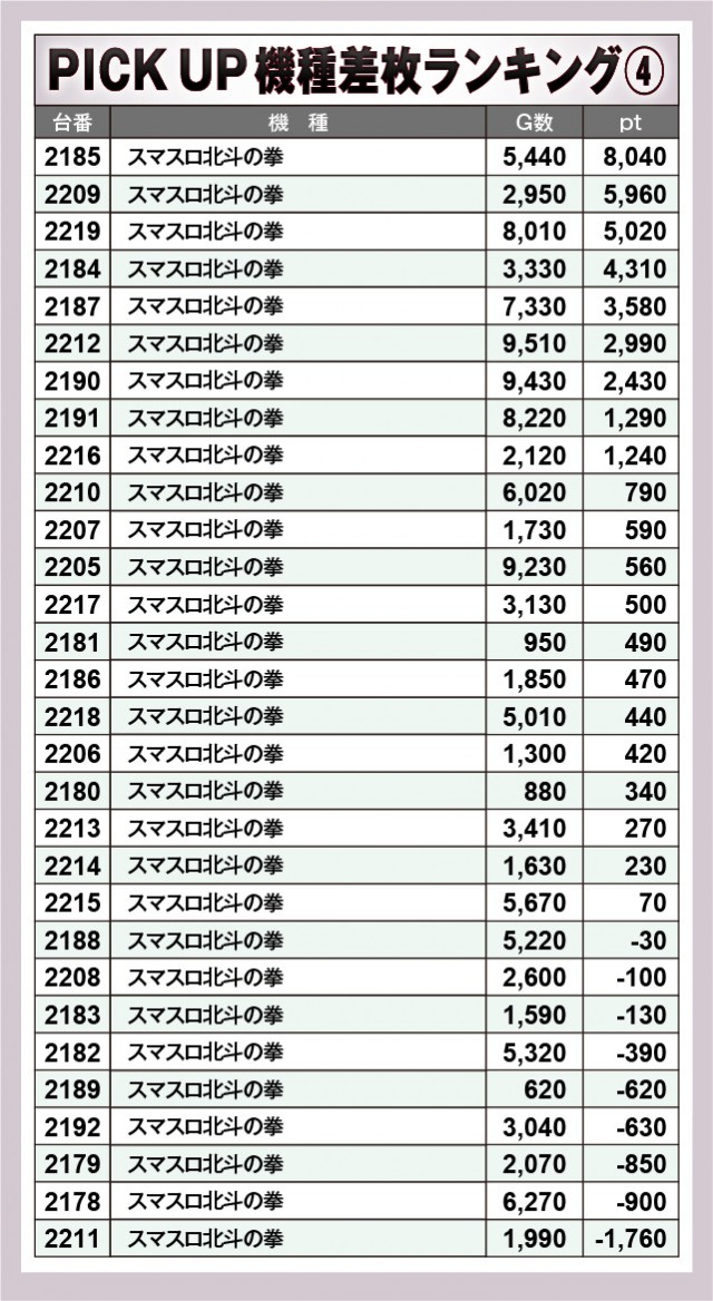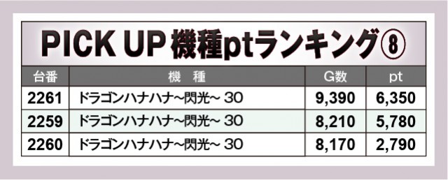 上表の優秀機種たちに目を通すと、AT機から沖スロ機、ノーマル機が名を連ねている。館内に設置されたあらゆる機種が打ちごたえのある状況となっており、幅広いファンが楽しめる環境が整っていた。その中で『スマスロ北斗の拳』は高いパフォーマンスでファンを魅了し、『沖ドキ!BLACK』もコンスタントにハイビスカスを輝かせている。『ドラゴンハナハナ~閃光~ 30』は全台プラス差枚数を達成しており、ファンは有意義な時間を過ごせたことだろう。