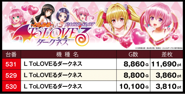 さらに『L ToLOVEるダークネス』は全台がプラス域でゲーム数も全てが8,000G超。プレイヤーは確信を持って打ち込んでいたのが伺えるだけに大満足な一日となったはずだ。