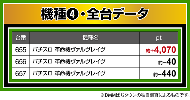 『パチスロ 革命機ヴァルヴレイヴ』も活気は大きく、655番台が約+4,000ptオーバー!!