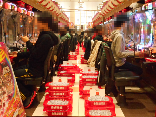 午後になると、4円パチンコの「CRぱちんこAKB48 バラの儀式」には目を見張る光景が広がっていた。ほとんどの台が好調さをみせており、どのプレイヤーも楽しんでいたことが伝わってきた。バラの儀式公演をにこやかに見ている人も多く、シマ全体が幸福感に満ちていた。