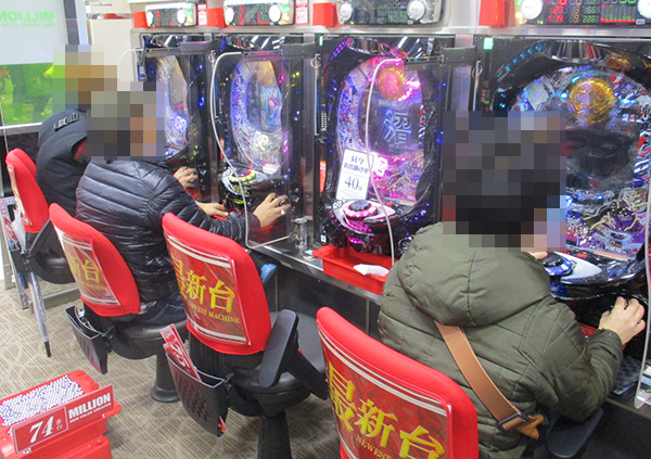 朝イチのホール内をみると、パチンコ・パチスロともに新台が注目を集めていた。
