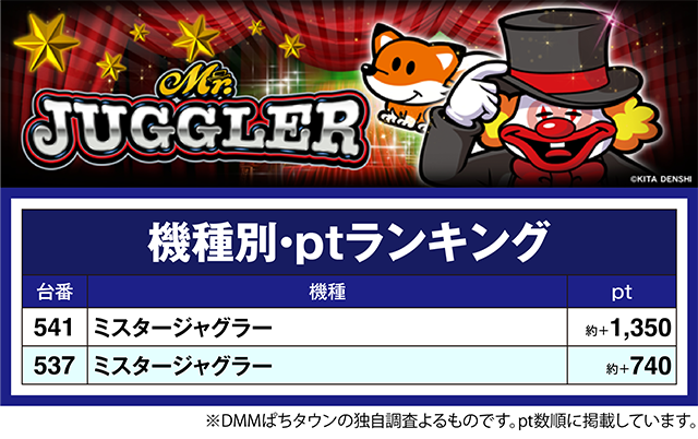 「ミスタージャグラー」でも、541番台が約+1,300ptを上回った。