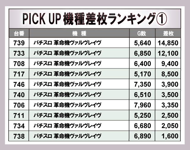 上表で取り上げている5機種は、いずれも大きな熱気を生み出しており、『パチスロ 革命機ヴァルヴレイヴ』の活躍ぶりは前述した通りで、遊技していたファンが明らかな好感触を掴んでいたのは間違いない。また『スロット Re:ゼロから始める異世界生活 season2』も同様で、活気が絶えない状況が続いていた。いずれもプラス差枚数を達成している台が多く、遊技していたファンの笑顔が想像に容易い。