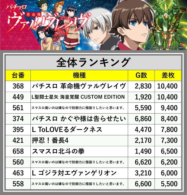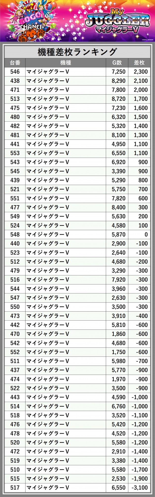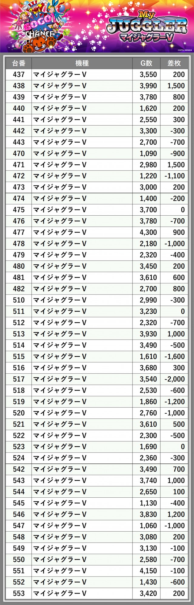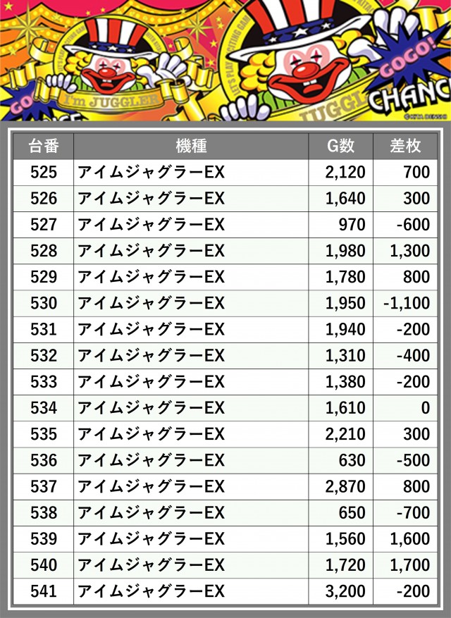 厳選された取材対象機種をはじめ、その他スロット全体から好記録が飛び出した!プレイヤーが楽しんだ1日を下記データにて振り返ってみて欲しい。