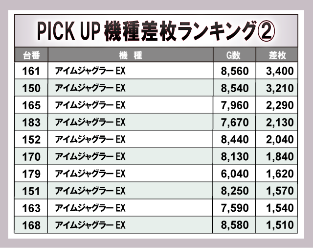 なんと万枚OVERが7台発生という結果は圧巻で、ホール内は大きく盛り上がった。またTOP30台は3,000枚OVERからなっていることもあり、遊技していたファンはかなりの手応えを感じていたようだ。