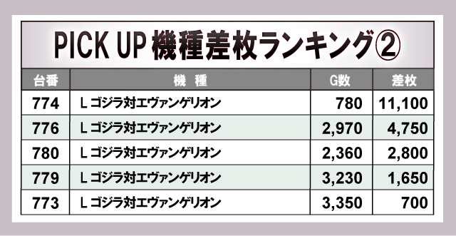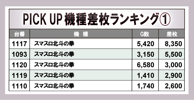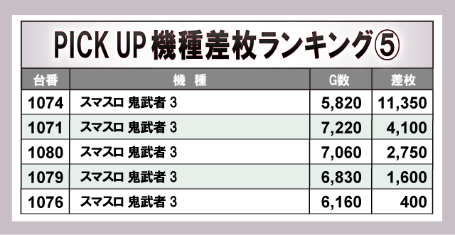 ※差枚数順に掲載しています。