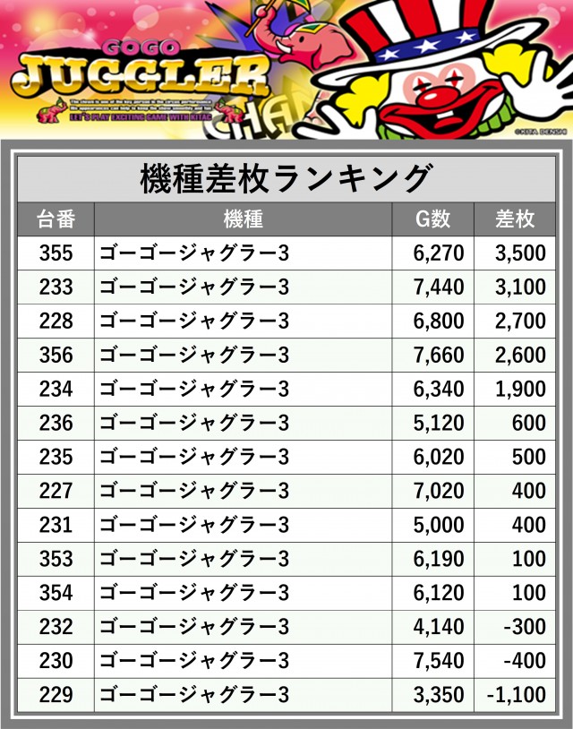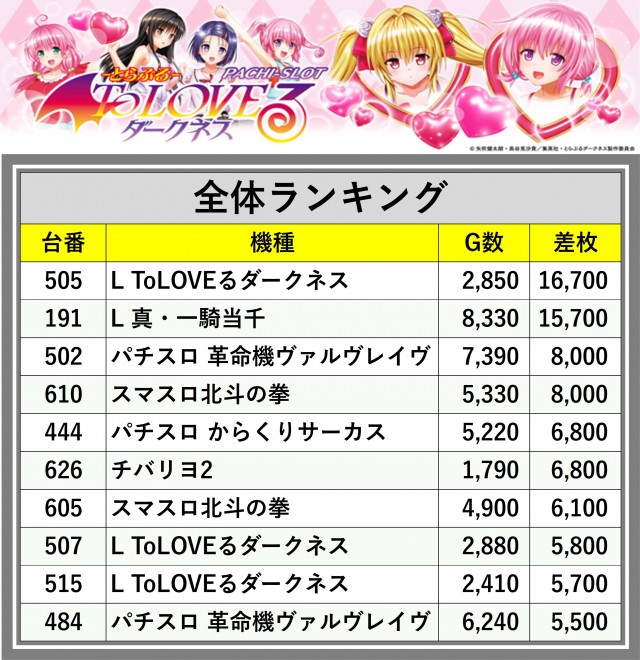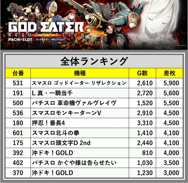 厳選された取材対象機種をはじめ、その他スロット全体から好記録が飛び出した!プレイヤーが楽しんだ1日を下記データにて振り返ってみて欲しい。