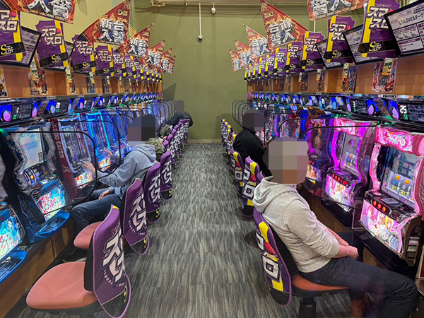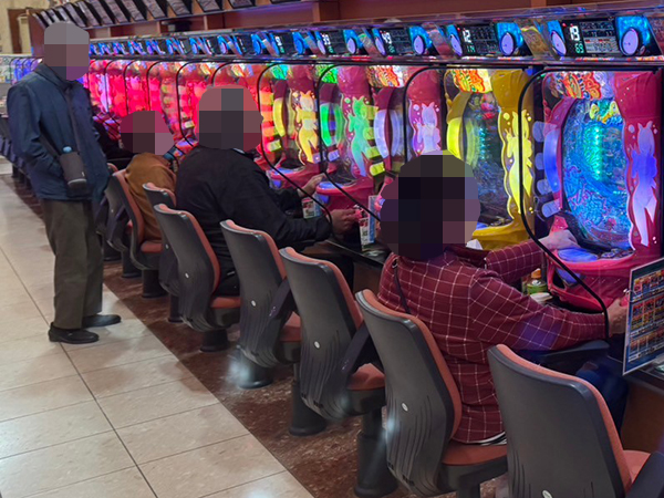 100円/90玉パチンコの支持も厚い。「PA新海物語」といった海物語シリーズを中心に、遊技を楽しむプレイヤーたちの姿が印象に残っている。
