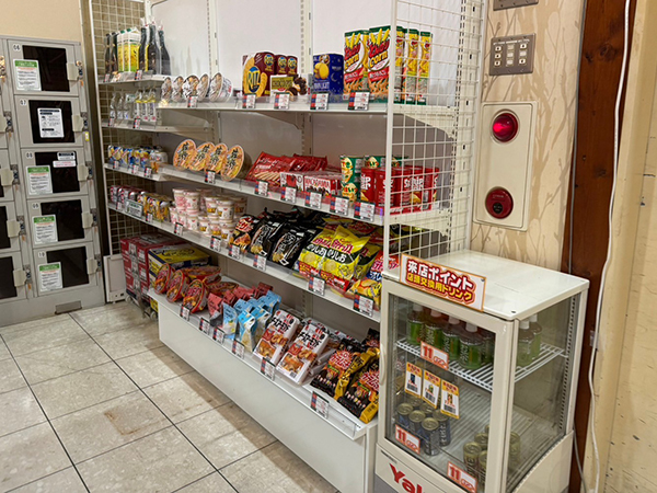 景品コーナーには酒類・お菓子・インスタント食品が豊富に用意されており、おみやげ選びも存分に楽しめることだろう。