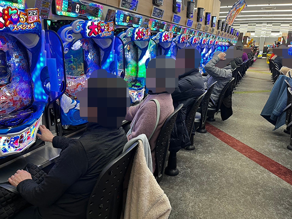 15時ごろの4円パチンコを見てみると「eフィーバーからくりサーカス2 魔王ver.」や「e大海物語5スペシャル」が高稼働。プレイヤーの嬉しそうな表情を多数確認している。