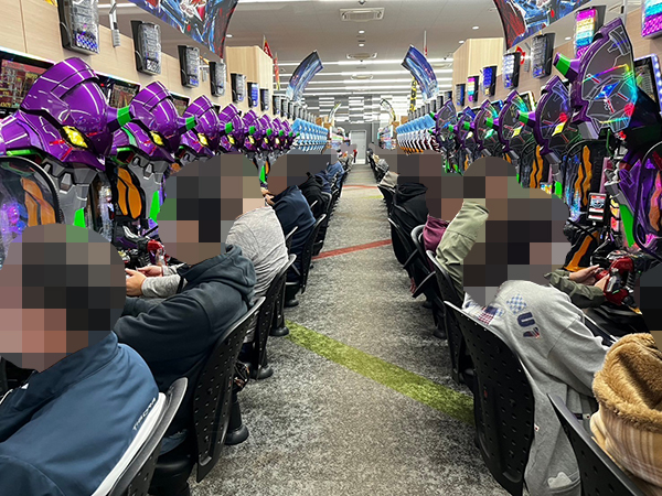 15時半ごろの4円パチンコでは、「新世紀エヴァンゲリオン〜未来への咆哮〜」や「P大海物語5」でプレイヤーが華麗なパフォーマンスを披露。微笑ましいシーンを目にしている。