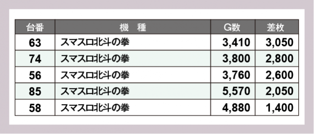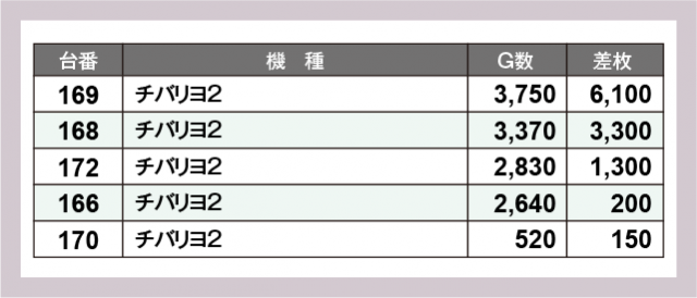 ※差枚数順に掲載しています