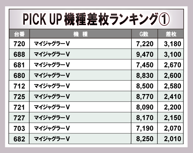 上表の優秀機種たちは、いずれもファンが手応えを感じていた様子が窺える。特にノーマルタイプの『マイジャグラーⅤ』『アイムジャグラーEX』は順調に大当りを積み重ねおり、大きな熱気を放っていた。