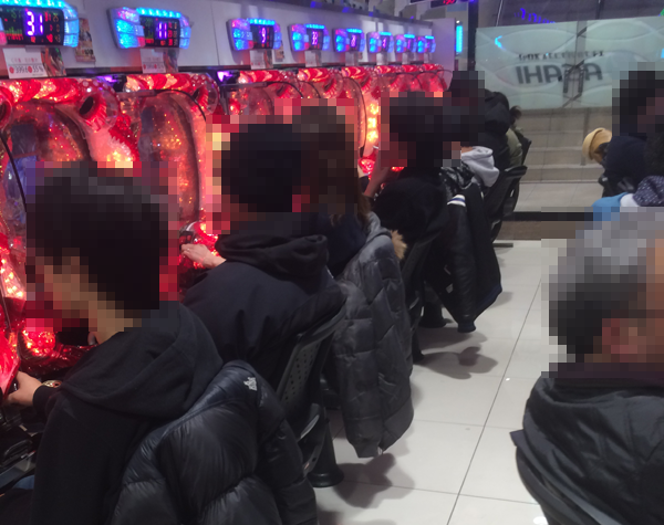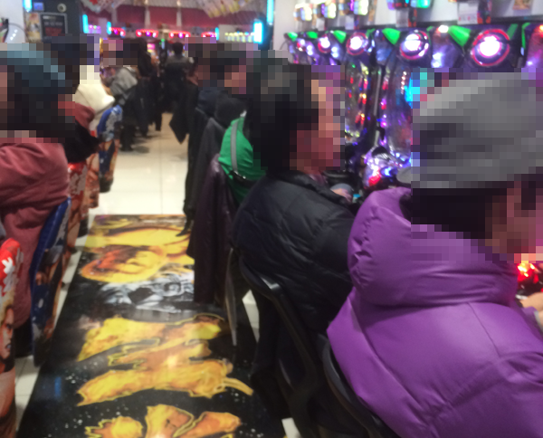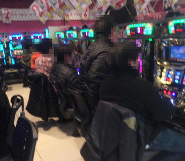 取材のなかで1番の盛り上がりをみせた夕方の時間帯には、パチンコもパチスロも多くのプレイヤーでにぎわっていた。
