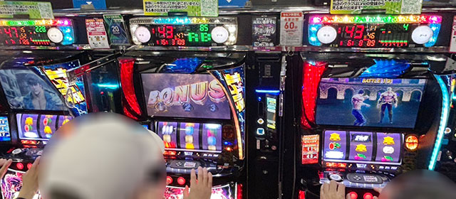 『スマスロ北斗の拳』や『パチスロ 革命機ヴァルヴレイヴ』、『パチスロ からくりサーカス』といった人気スマスロ機が中心となって熱を発しており、盛り上がりをリードしていた。そして『マイジャグラーⅤ』も高い活気で賑わい、コンスタントなGOGOランプの輝きを確認できる。いずれもファンから厚い支持を集める機種であるため、彼らが活躍していた事実は、ファンにとって何よりも嬉しかったに違いない。