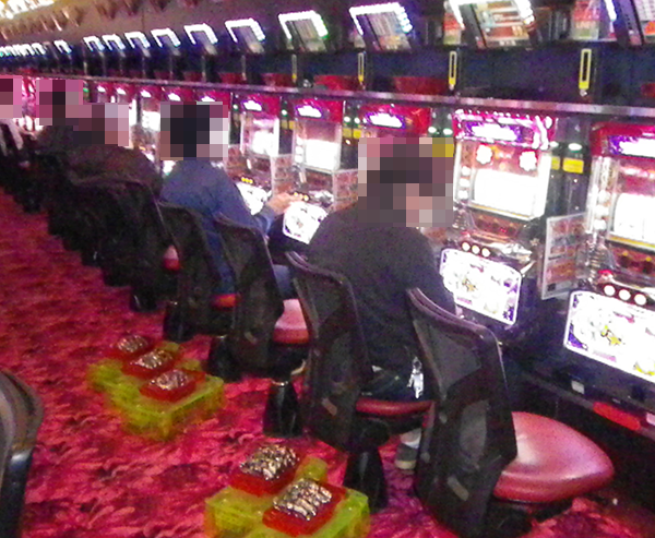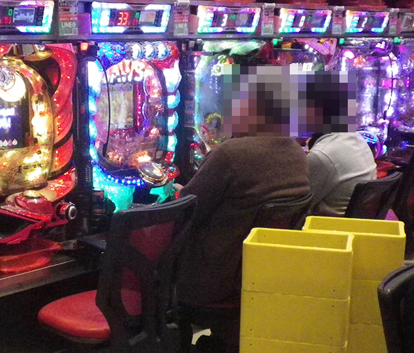 午後になっても20円パチスロでは沖スロが活況。「沖ドキ!-30」やハナハナシリーズに、シンプルなおもしろさを味わっているといったプレイヤーの姿があった。