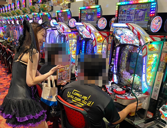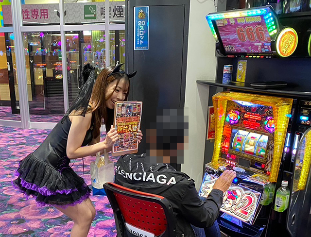 遊技の感想を聞いたり、DMMぱちタウンのPRをしたりと、笑顔でお話をしていましたよ♪