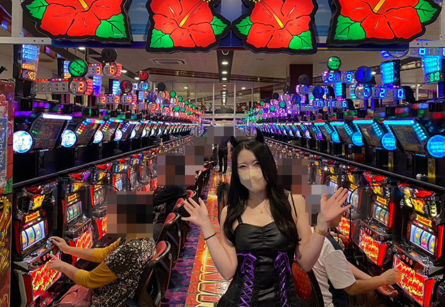 DMMぱちタウンのPRなどをおこないながら、店内をまわっていった未織ちゃん❤︎