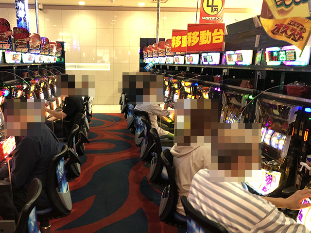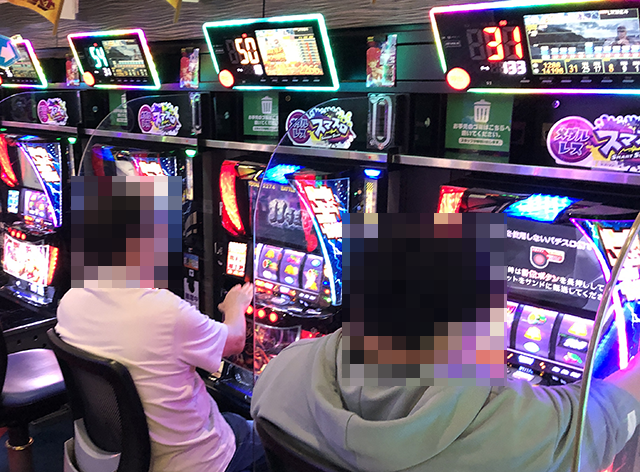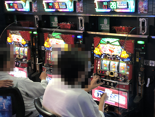 パチスロコーナーをみてみると、笑顔で遊技をおこなっている姿が多かった。