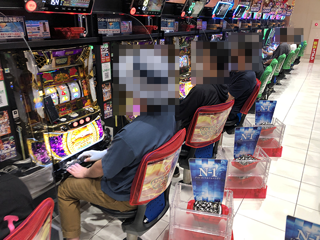2箱以上や3箱以上の持ち玉を使い、楽しそうに遊技をおこなっていた。