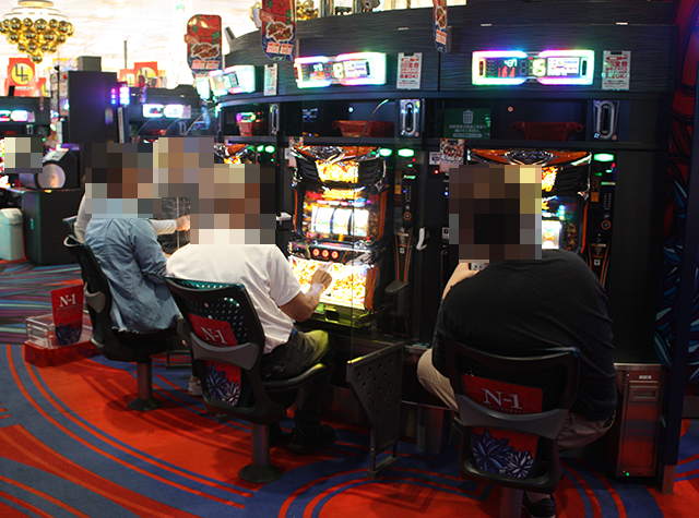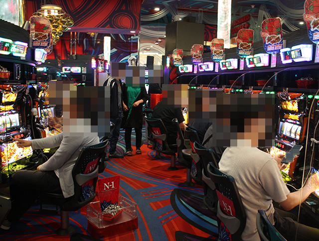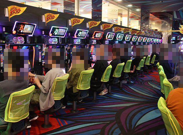 笑顔で遊技をおこなっているプレイヤーを探すべく、パチスロを中心に店内をまわっていった。