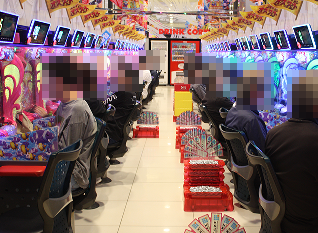 プレイヤーたちは持ち玉を使い、うれしそうに遊技中。