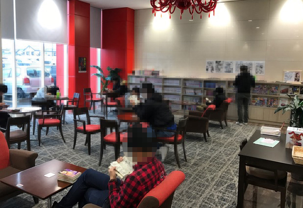 赤いシャンデリアが目をひくレストコーナーには、さまざまなジャンルの漫画本が取り揃えられており、プレイヤーからも好評。リラックスしつつ、有意義な時間を過ごせているように思えた。
