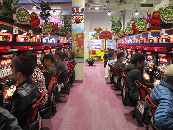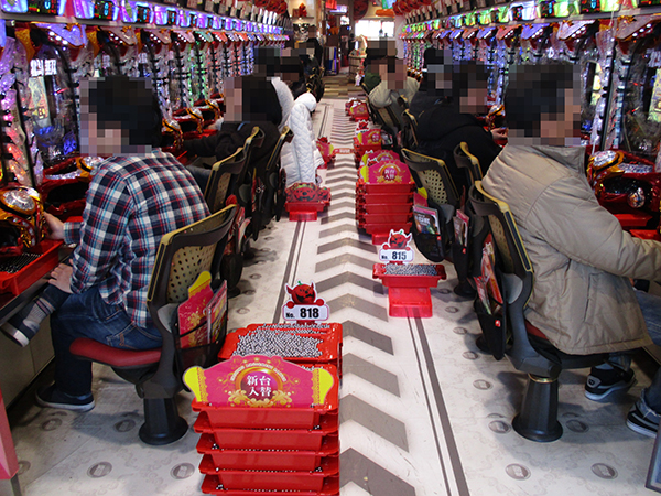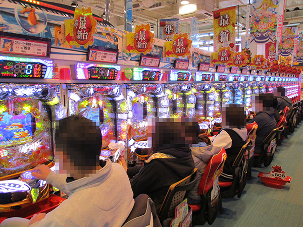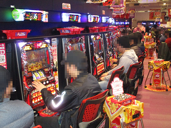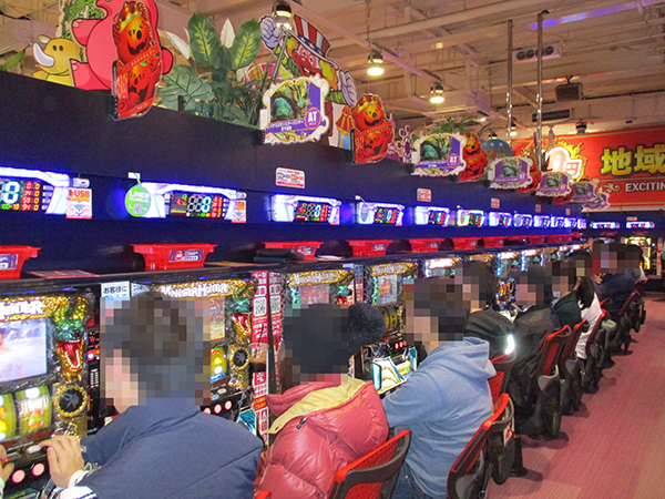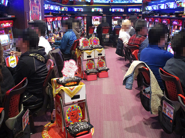 午後の4円パチンココーナーでは、定番の「ぱちんこCR真・北斗無双」や「CR花の慶次X~雲のかなたに~」などの人気が高く、華やかな雰囲気となっていた。
