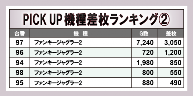 ※差枚数順に掲載しています。
