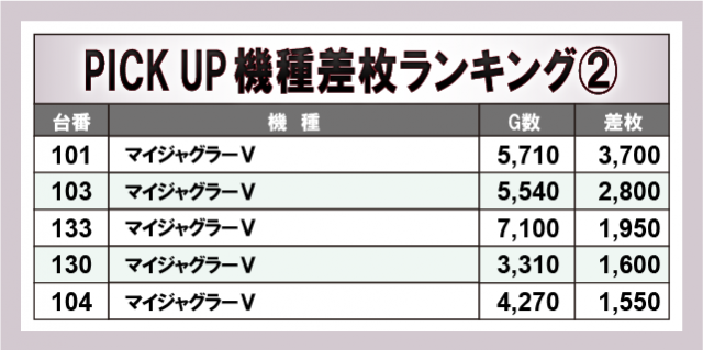 続いては、当日とくに盛り上がっていた機種を紹介。『押忍!番長4』『マイジャグラーⅤ』『スマスロモンキーターンV』の4機種は好成績をマークしており、コンスタントな当選でファンにとって叩き甲斐のある状況だったに違いない。
