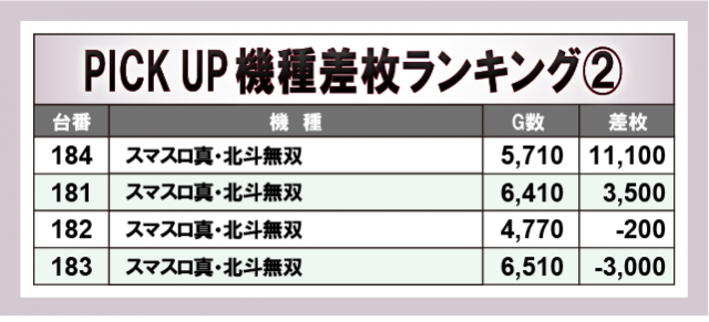 ※差枚数順に掲載しています。