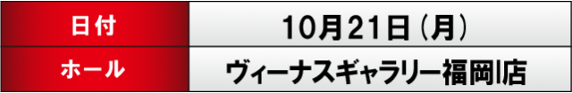 10月21日、『ヴィーナスギャラリー福岡Ⅰ店』にてDMMぱちタウンとのコラボ企画「キングフッキー君 独占取材」が実施された。この日も気合を入れて臨んだ一戦となったが果たしてホール内の盛り上がりはどうだったのか…さっそく詳細データとともに、店内の様子をお届けしていこう!
