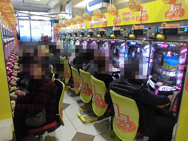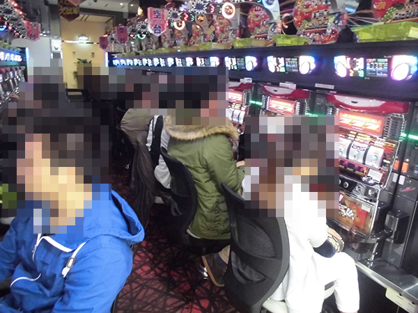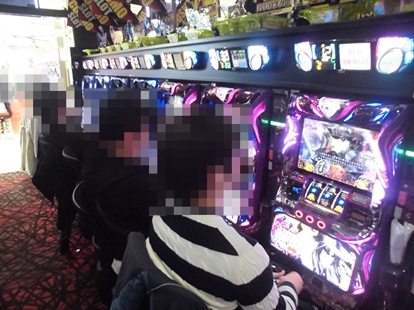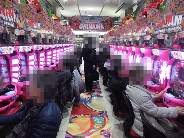 15時頃の4円パチンコでは、「CRスーパー海物語IN沖縄4」や「ぱちんこCR真・北斗無双」が大盛況。あちこちに華やかなシーンがみられたことも印象に残っている。