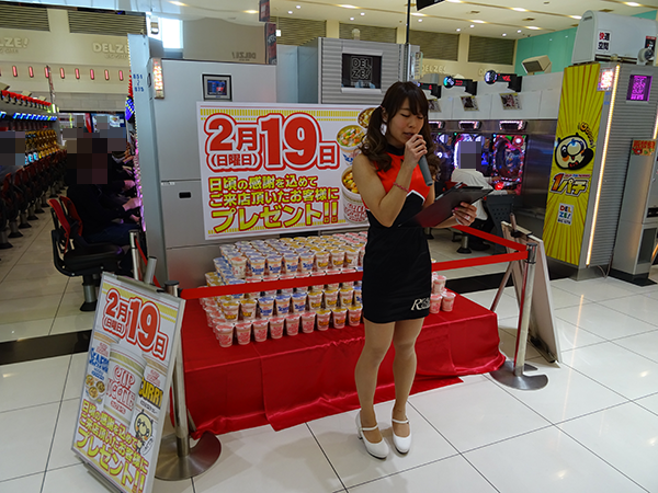 また、この日は来店したプレイヤーにカップラーメンが配られるなど、遊技以外の面からも楽しさが感じられた。