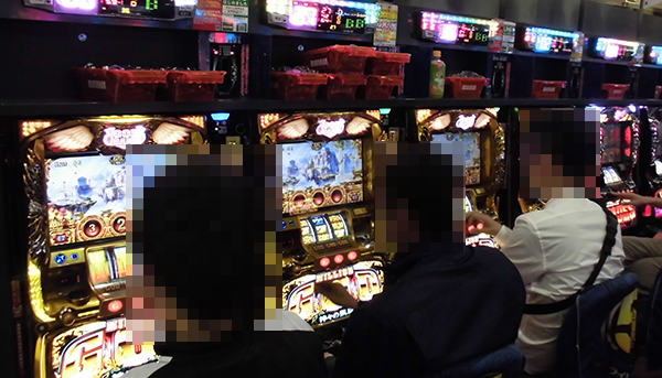 16時頃の4円パチンコでは、「CRスーパー海物語IN沖縄4」がほぼ満席。機種の性能を最大限まで引き出しているようなプレイヤーが多く、盛り上がりもひときわ大きかった。