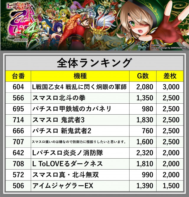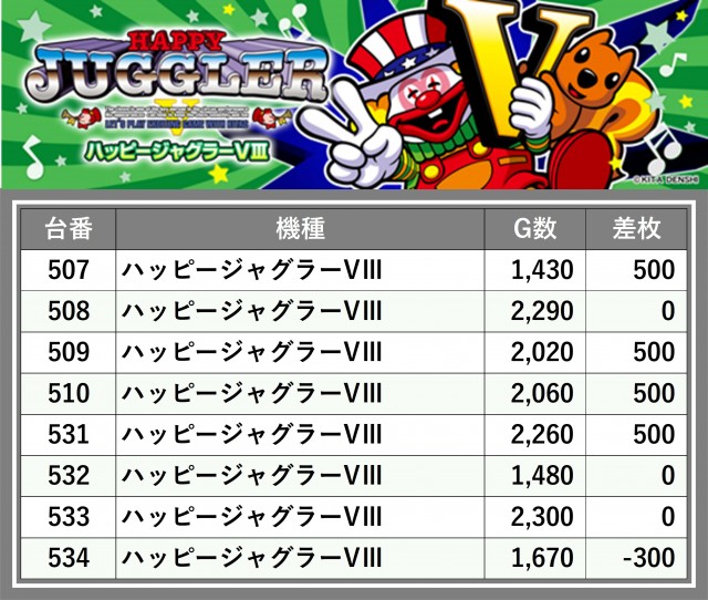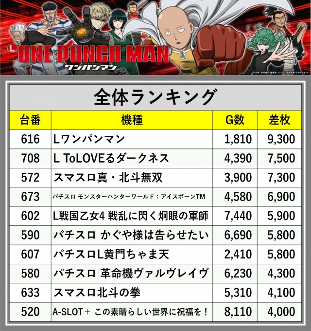 厳選された取材対象機種をはじめ、その他スロット全体から好記録が飛び出した!プレイヤーが楽しんだ1日を下記データにて振り返ってみて欲しい。