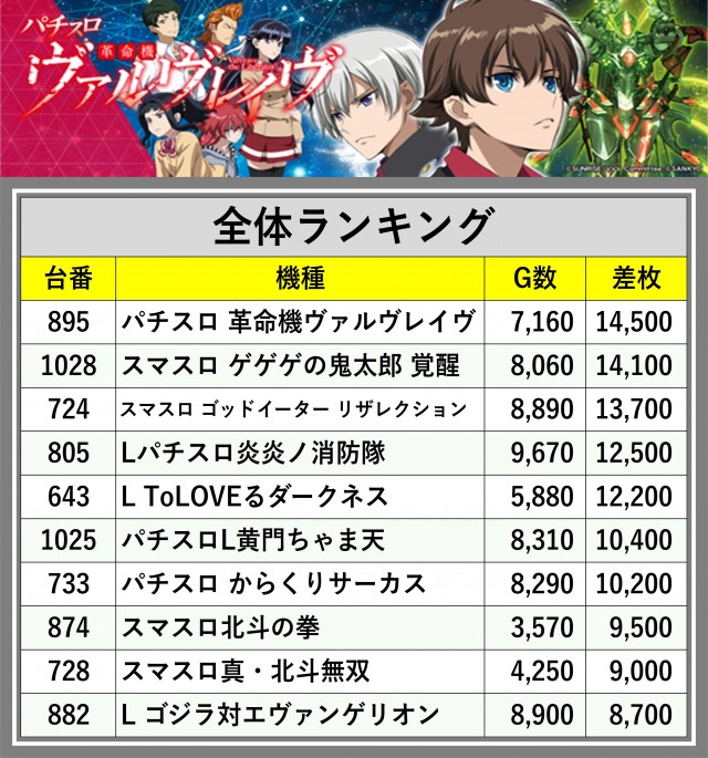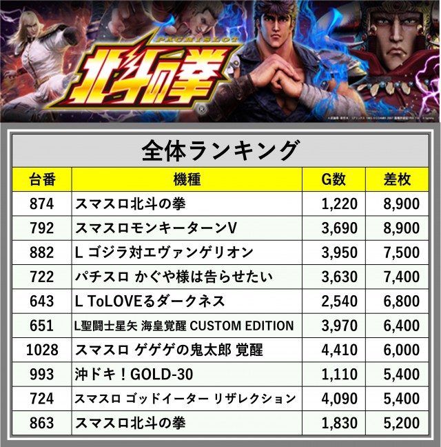 厳選された取材対象機種をはじめ、その他スロット全体から好記録が飛び出した!プレイヤーが楽しんだ1日を下記データにて振り返ってみて欲しい。